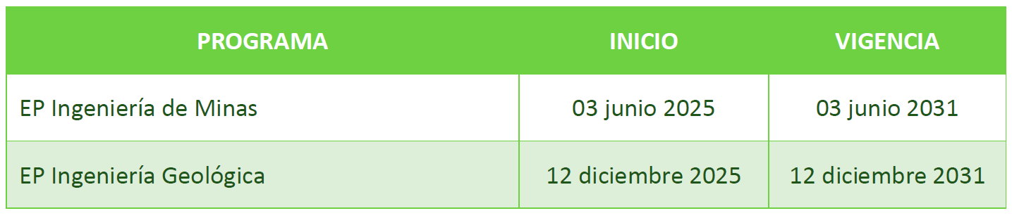 Primero fue la Escuela Profesional de Ingeniería de Minas, que en setiembre del 2024 se presenta a la Evaluación Externa, y en junio del 2025 recibe la resolución de Acreditación Nacional por el periodo de seis años.